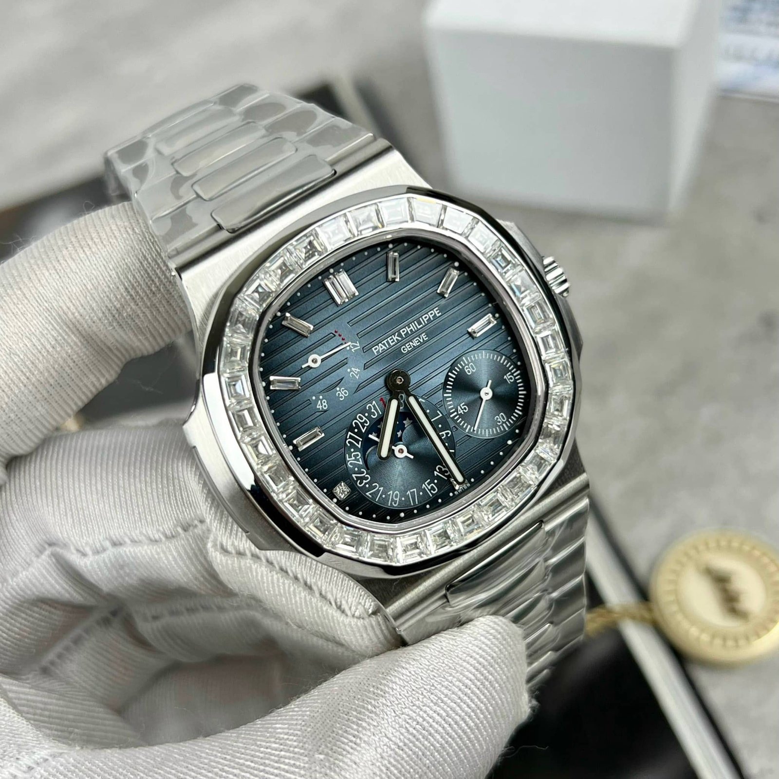 PATEK PHILIPPE NAUTILUS 5712 CUSTOM BAGUETTE MOISSANITE BEZEL 40MM